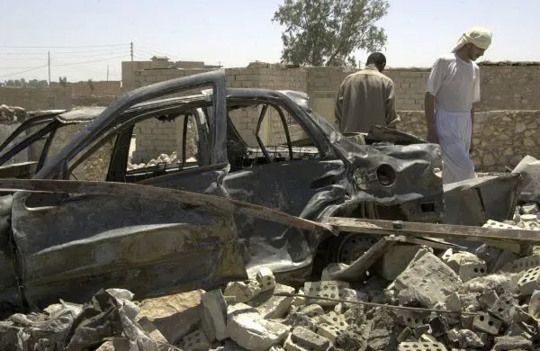 ▲资料图片:伊拉克费卢杰居民在被美军空袭摧毁的房屋废墟中走动。(美联社)