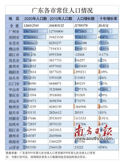 深圳人口10年增714万珠三角聚集全省62%常住人口